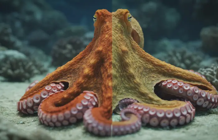 Осьминоги не ограничиваются сменой цвета. Они способны изменять текстуру кожи, создавая бугорки, шипы и складки. Специальные мышцы под кожей — папиллы — могут выдвигаться, имитируя текстуру кораллов, камней или водорослей.
